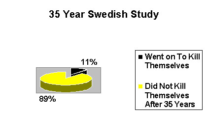 A Swedish study with a 35-year follow-up found only 10.9 percent later killed themselves.